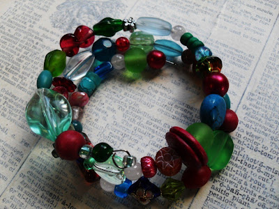 The weather has been frightful so I put down the gardening gloves and went to the studio. I made a few cool summer chokers that are casual and cute and go with everything. You can wear them alone or with another. I always seem to wear 2 of them together . I've dabbled in homemade clay beads which I love and have also tried making paper beads out of discarded newspaper etc. These are fun and since I've always loved working with words these pieces are one of my favs! I'm going to try to do some paper beads with comic strips and maybe some of my own artwork. Gotta try new things!